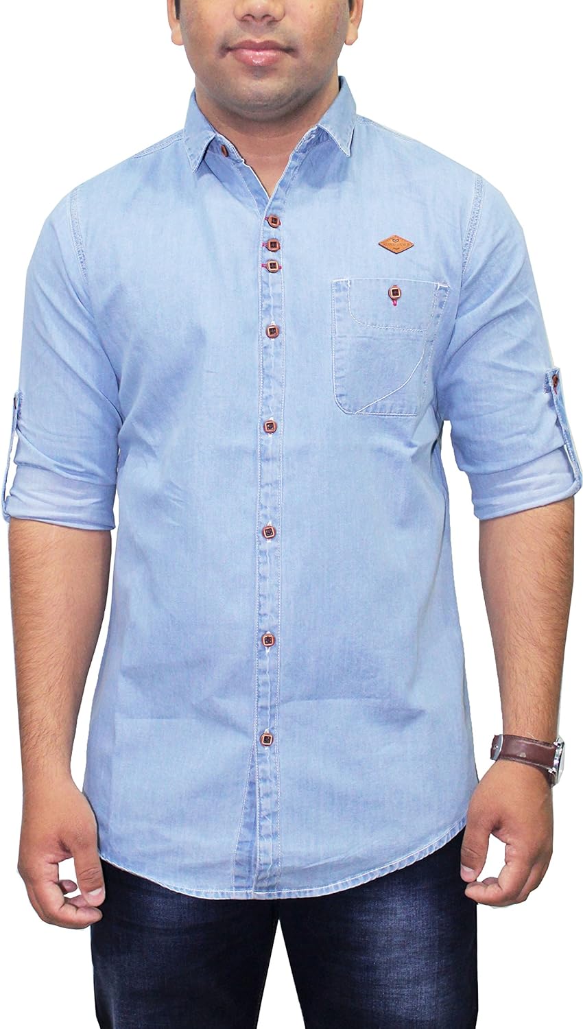 AA' Kuons Avenue Men's Linen Cotton with Belgian Print Mandarin Collar Long Sleeve Fusion Casual Shirt (Colour Options Inside)
