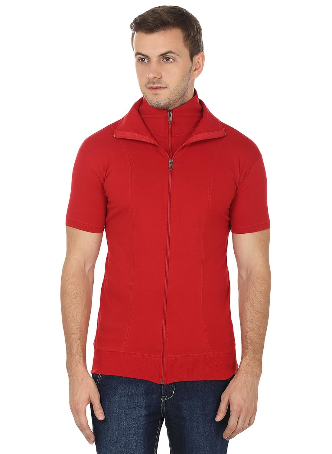 A Black Collection Men's Full-Zip Cotton T-Shirt has an round shape neck zone with half sleeve and top of the more essential gathering neck shirt. Black Collection Men's Full-Zip Cotton T-Shirt were exhibited so that the neck region of the shirt does not show up when an outer shirt is worn over it, thusly decreasing or discarding the conspicuous fabric over the outside shirt of a gathering neck shirt.