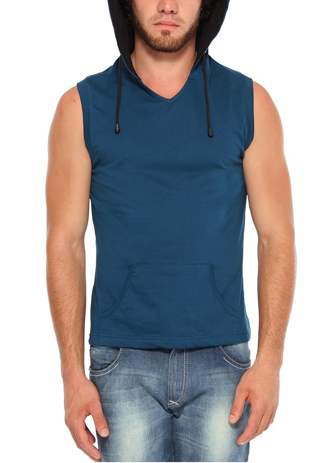 Pepper Club Men's Cotton Slip over Sleeveless With Hood Top Kangaroo Pocket-Indigo is in best style of neuter fabric shirt, named after the T state of the body and sleeves. It is typically mix without any sleeves, a round neck line known as a team neck, with hood top.