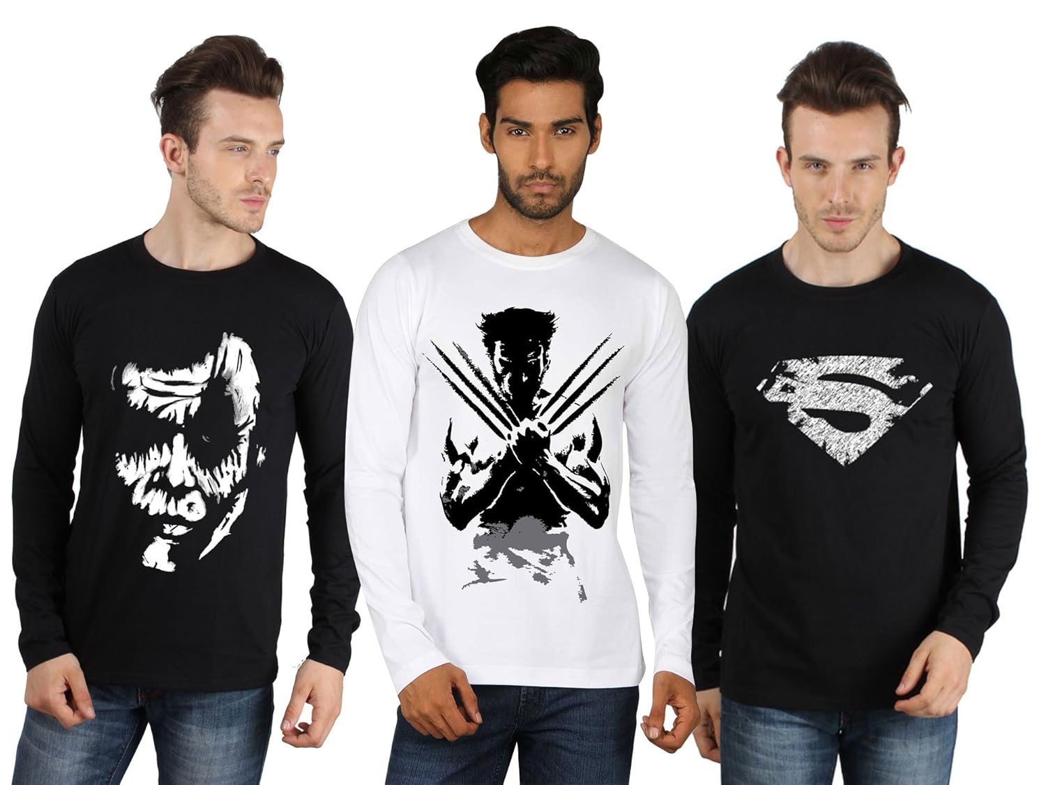 A Sayitloud printed full sleeve t shirts pack of 3 for Men has an round shape neck zone with full sleeve with with and black colors and top of the more essential gathering neck shirt. Sayitloud printed full sleeve t shirts pack of 3 were exhibited so that the neck region of the shirt does not show up when an outer shirt is worn over it, thusly decreasing or discarding the conspicuous fabric over the outside shirt of a gathering neck shirt.